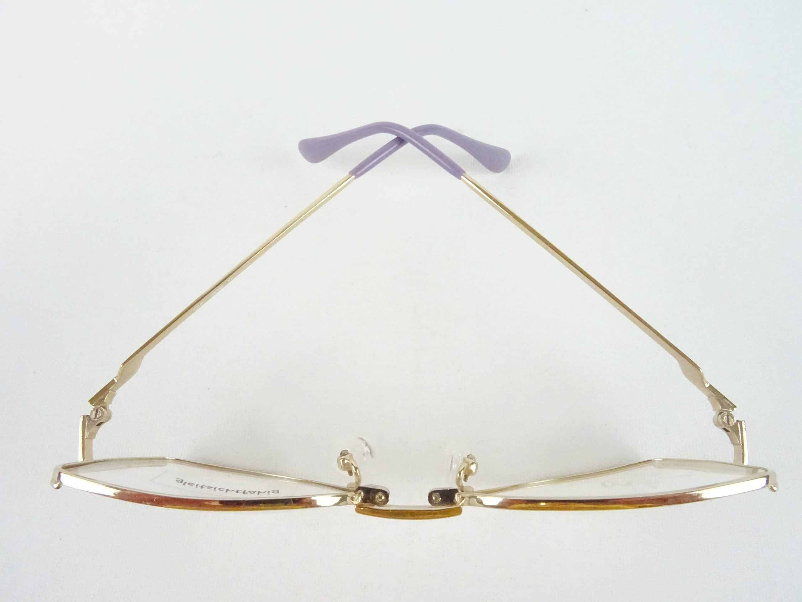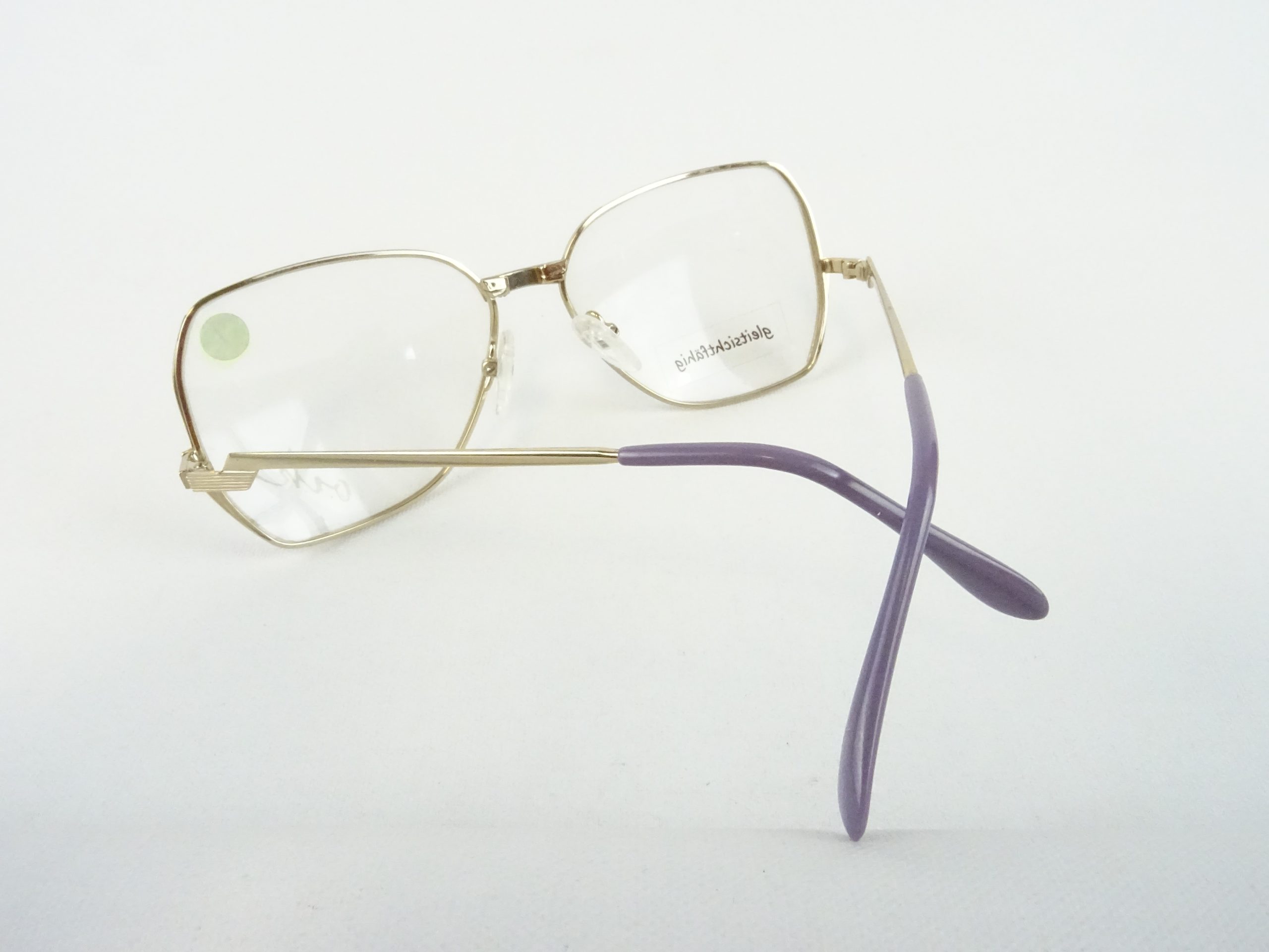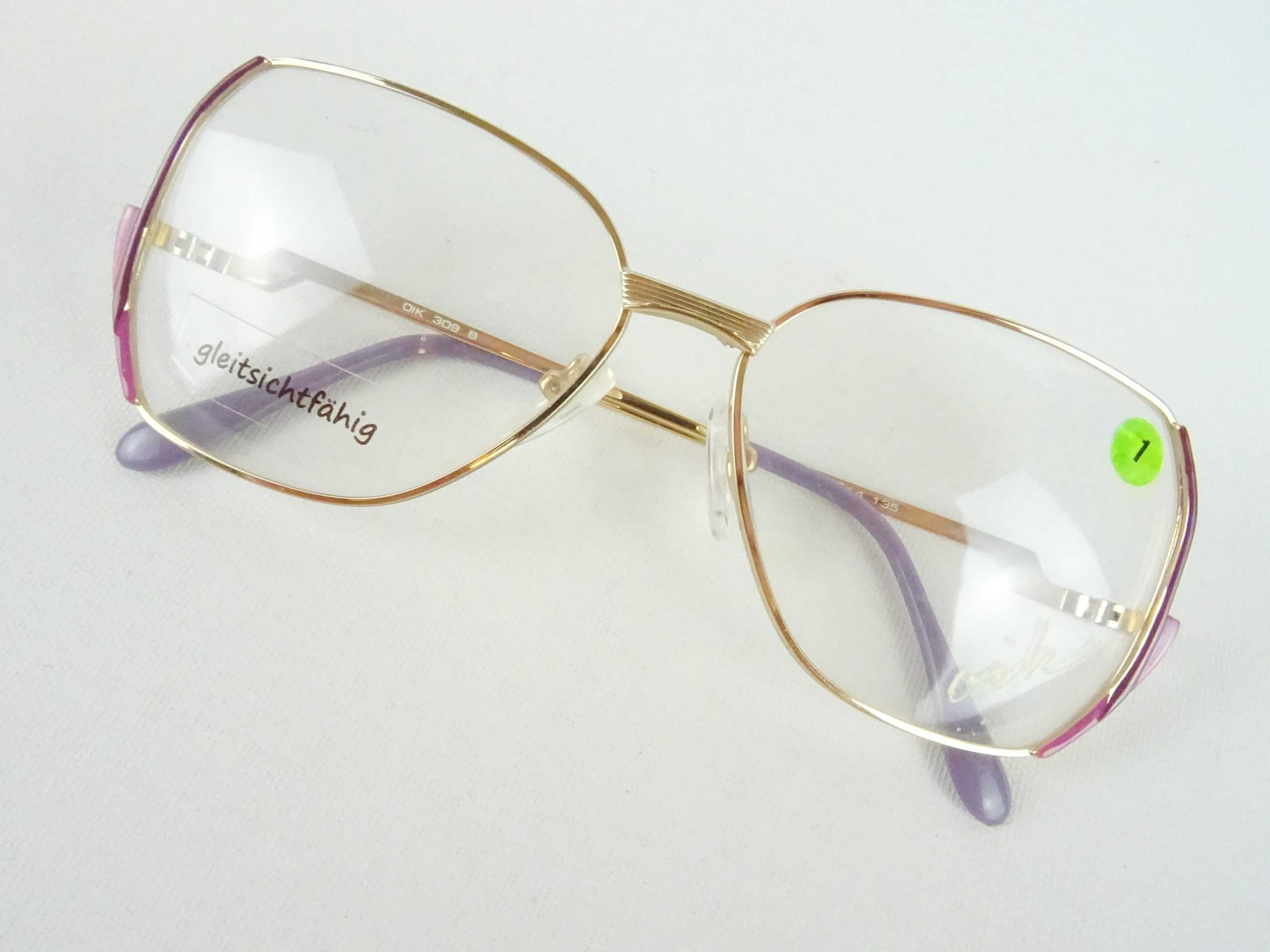 Brille Damen Metallgestell elegante Brillenfassung 70s Vintage NOS große Glasform gold-lila-pink Boho Gr.: M