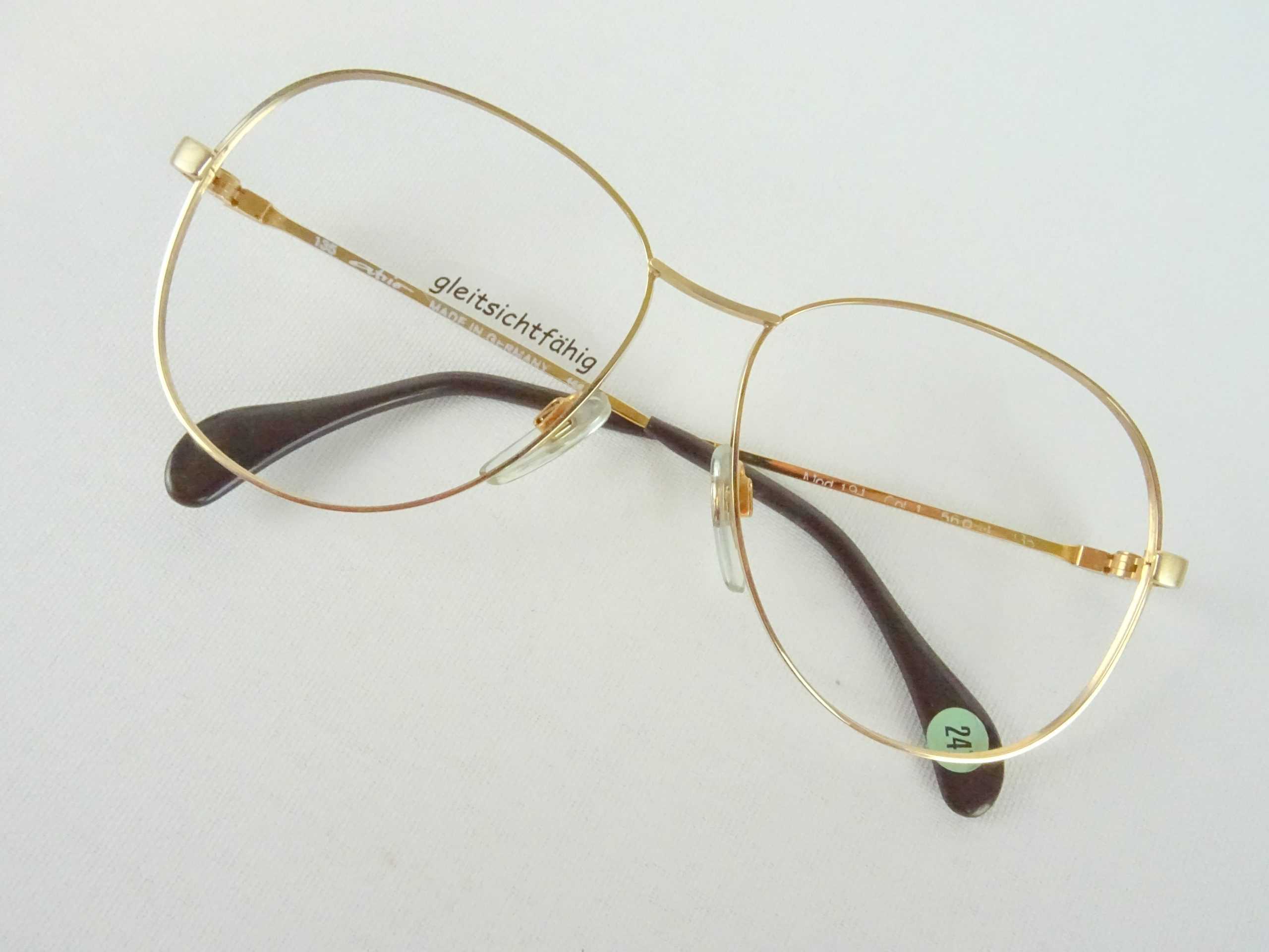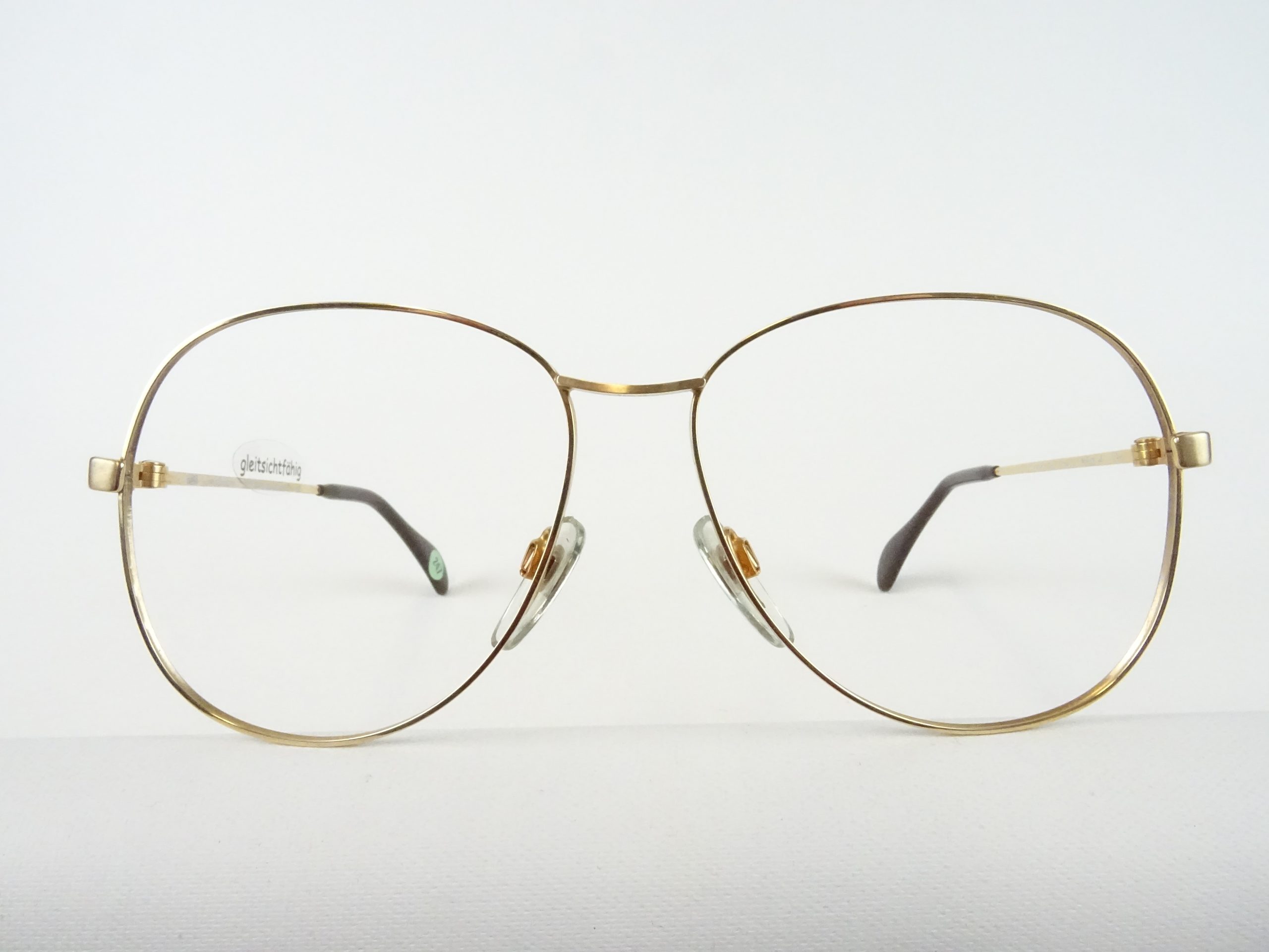 Brillengestell leichte Damenbrille mit extragroßen Gläsern Vintagefassung 70er 70s goldfarben schlicht Gr. M