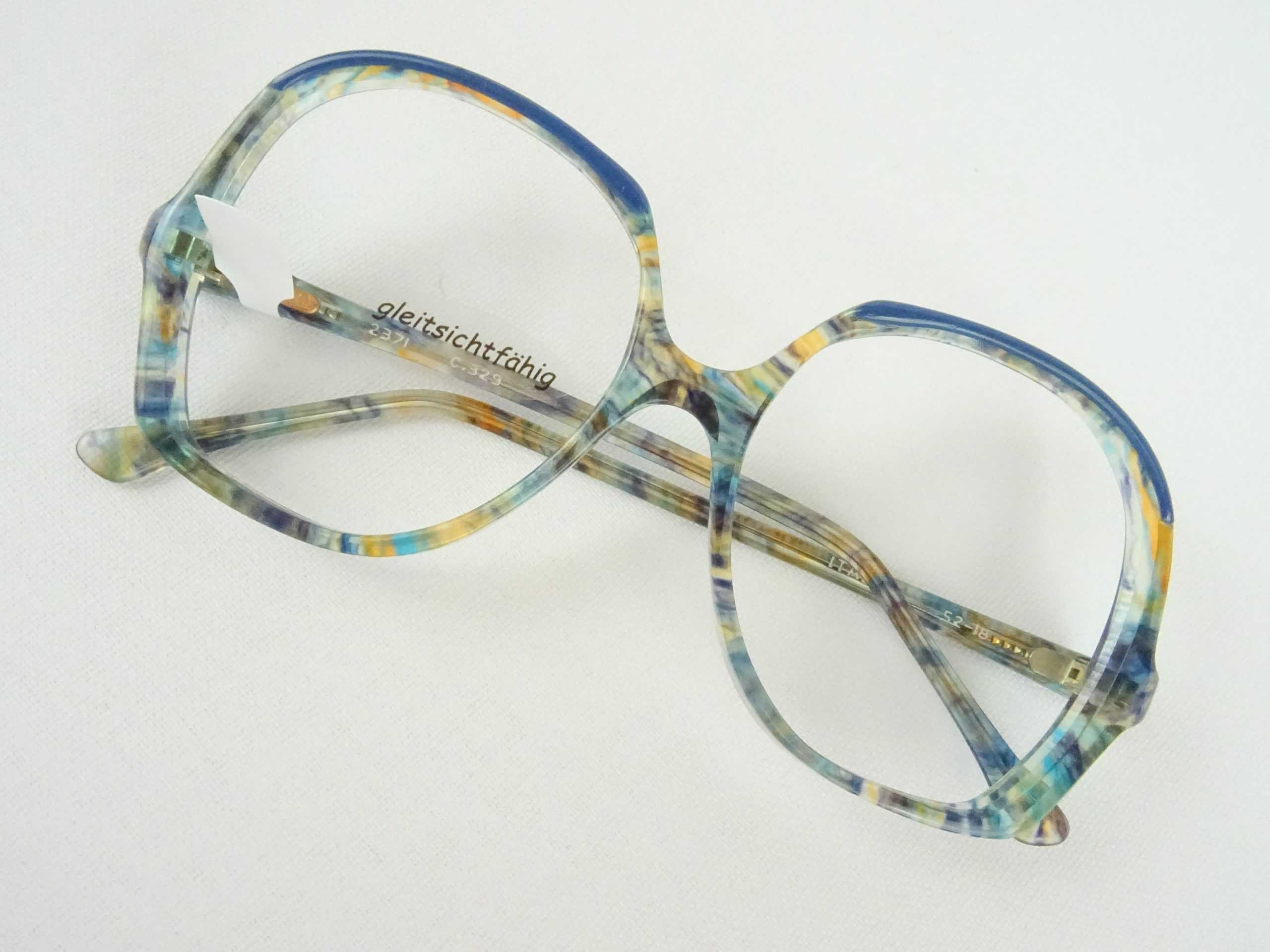 Damenbrillen Hippiebrille Vintagefassung 70er oversized XXL Form blau-braun extragroße Gläser Gr. M
