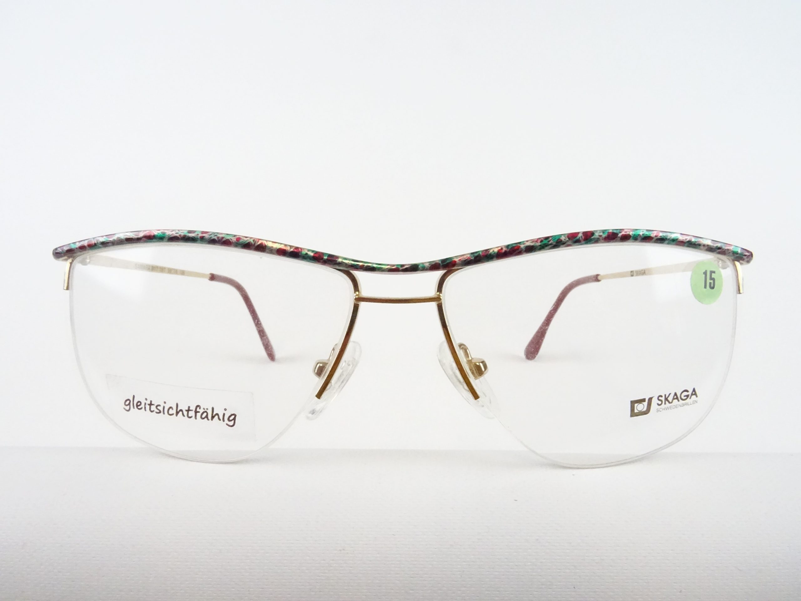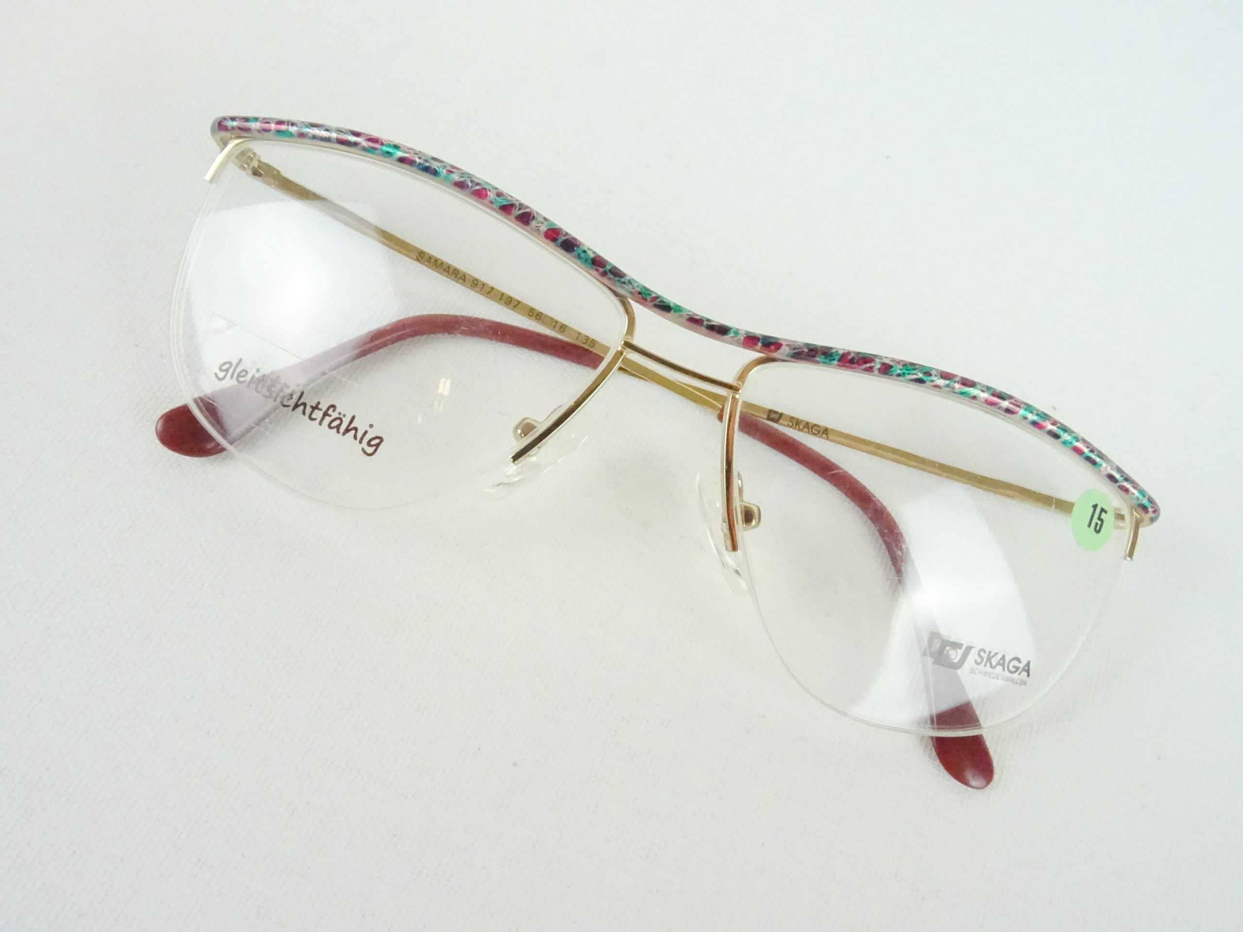 Skaga buntes Brillengestell für Frauen große Schmetterlingsform Metallfassung ohne Unterrand NOS 70er Vintagebrillen Gr. M