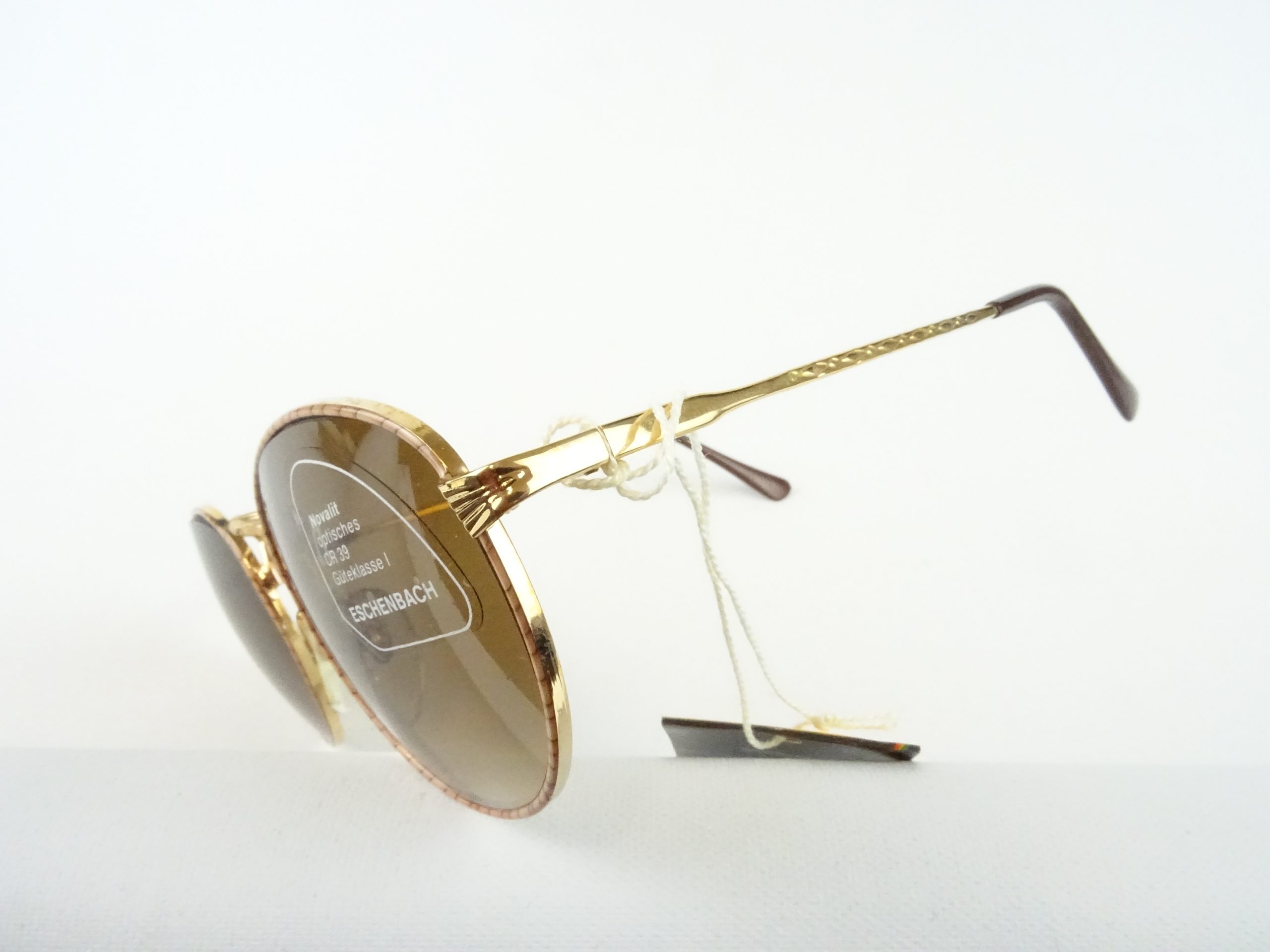 Sonnenbrillen Metall Vintagesonnenbrille ESCHENBACH original 80er Jahre rundlich Panto leicht Nostalgieform beige Gr. M