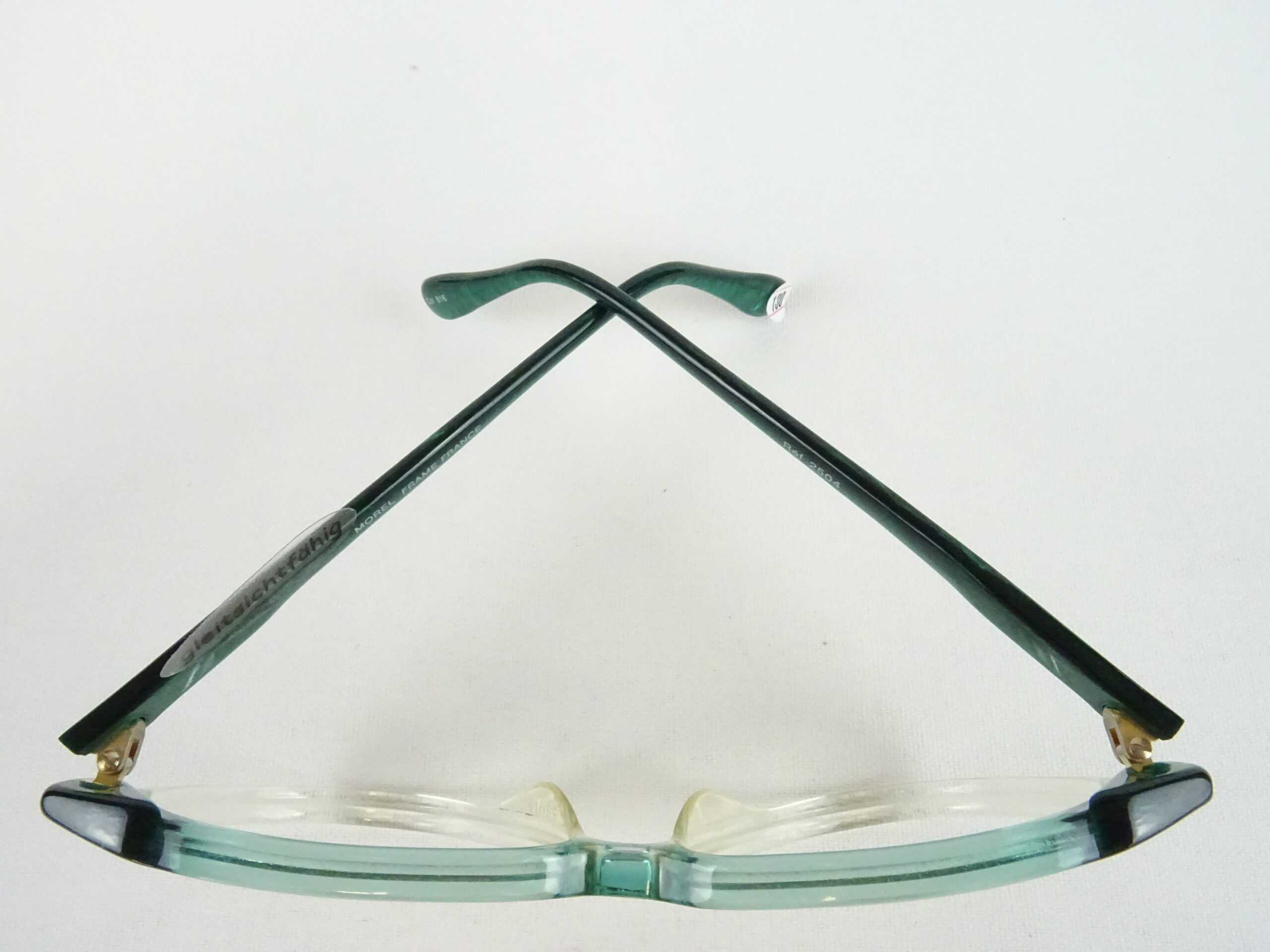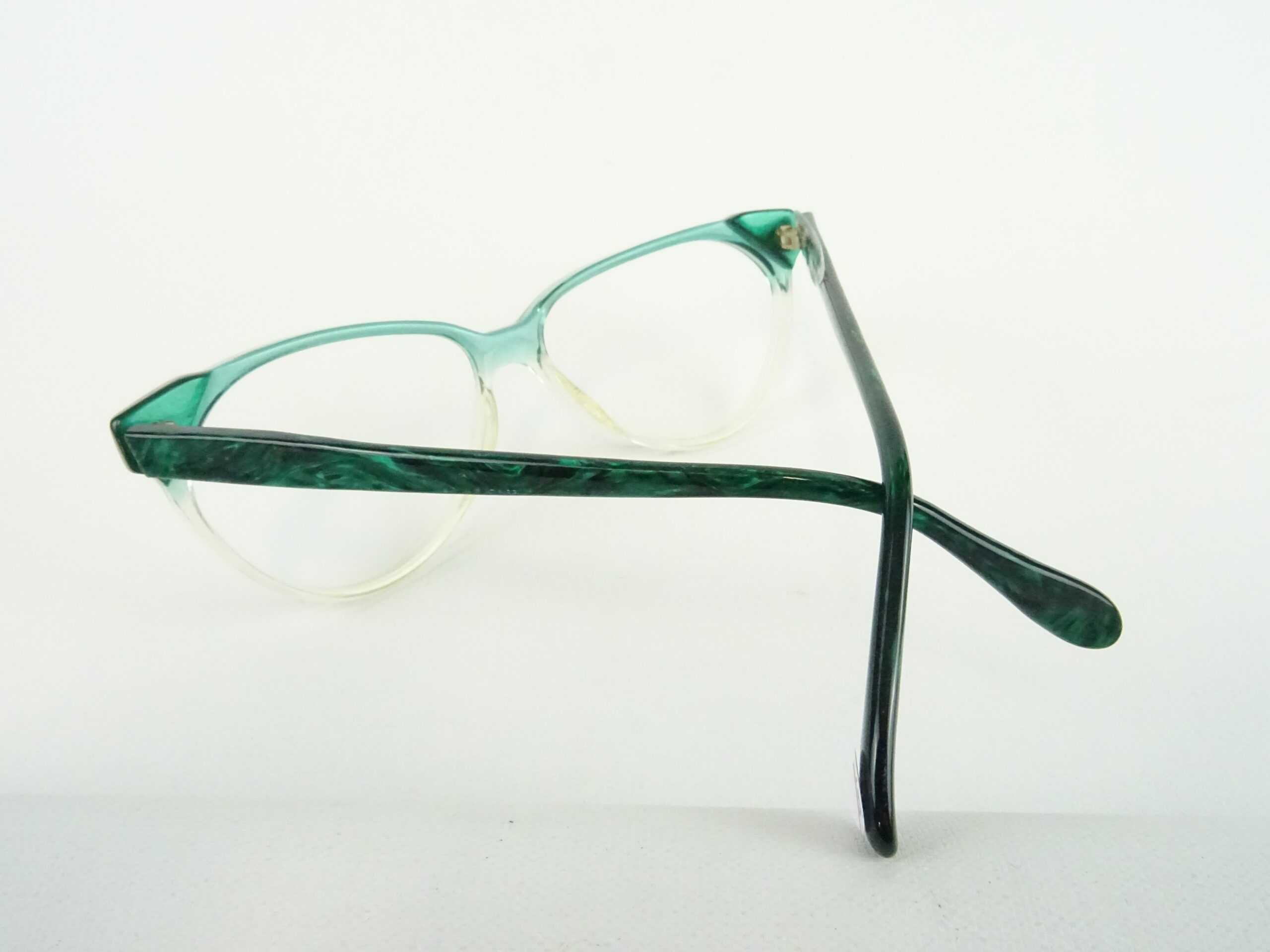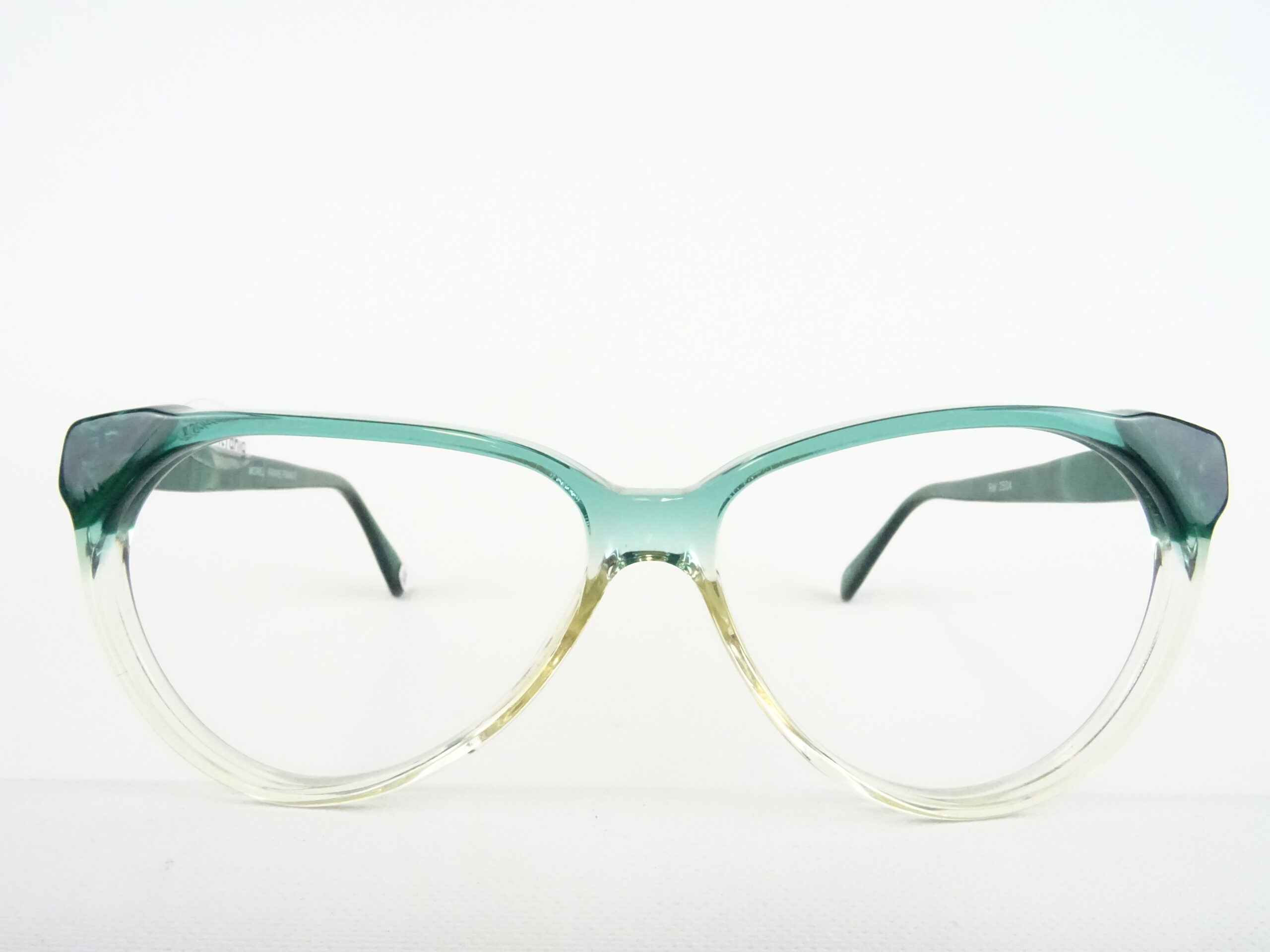 Transparent-grüne Brille Kunststofffassung Damenbrille Vintage Boho große Glasform ohne Nasenstege Gr. M